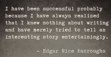 Here’s something else Edgar Rice Burroughs did: he wrote a ton. Just take a look at his Wikipedia page and you’ll see what I mean. A writer must write…and keep writing…and keep putting it out into the world. The rejections will come, but if you write enough, some doors will open, maybe only a crack, but enough to give you the hope to write something new and try it again. And keep trying. And never stop learning.
